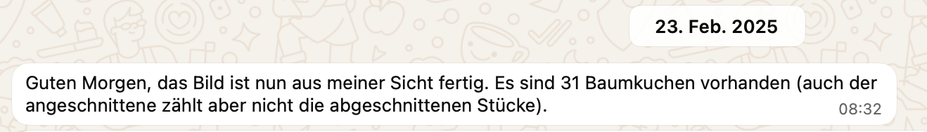 Zur Anzahl der Baumkuchen auf dem Wimmelbild hier die Aussage von Roland dazu: