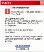 fzk_avira.JPGSchlagen andere Virenscanner bei der FZK Ausgabe 16.08 auch Alarm? Fehlalarm? Aufgrund der Dateigröße kann ich leider keine Gegenprüfung mit https://www.virustotal.com/de/ o.ä. machen. Infos zum potentiellen Fund: https://www.avira.com/de/support-threats-summary/tid/3647/threat/TR.Dropper.Gen