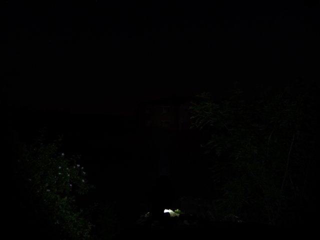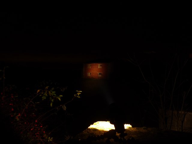 ) Mitte vom Haus betraegt 50m. Die Kameraeinstellungen sind f/3.3, 8s, ISO100, 28mm.